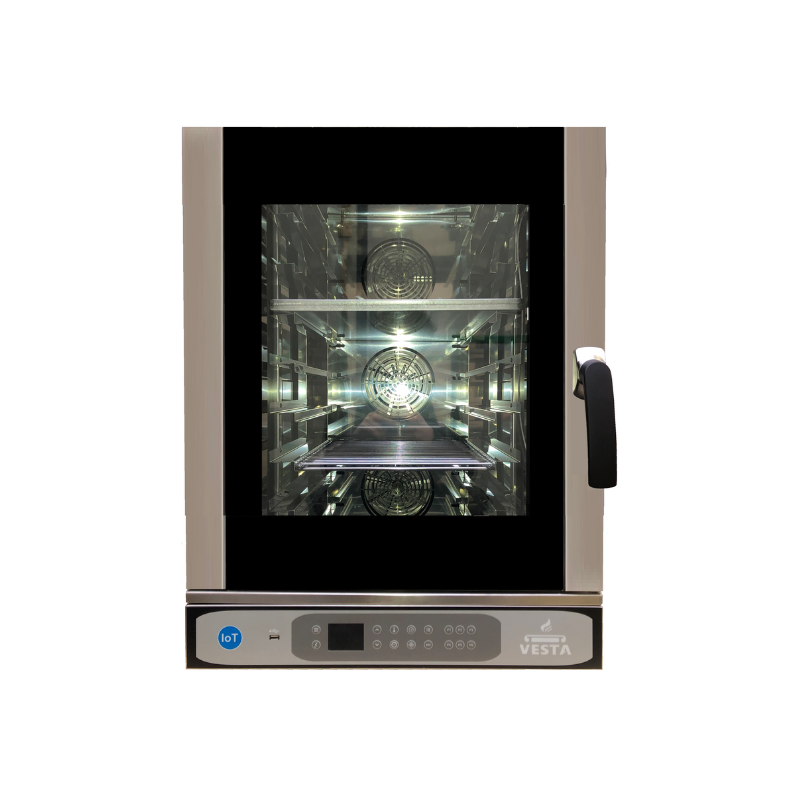Ideal for catering professionals including food trucks and snack bars, this Professional Forced Air Manual Oven with Steam has 3 levels that can hold 430 x 330 type trays. It has an adjustable temperature range from 50°C to 270°C.