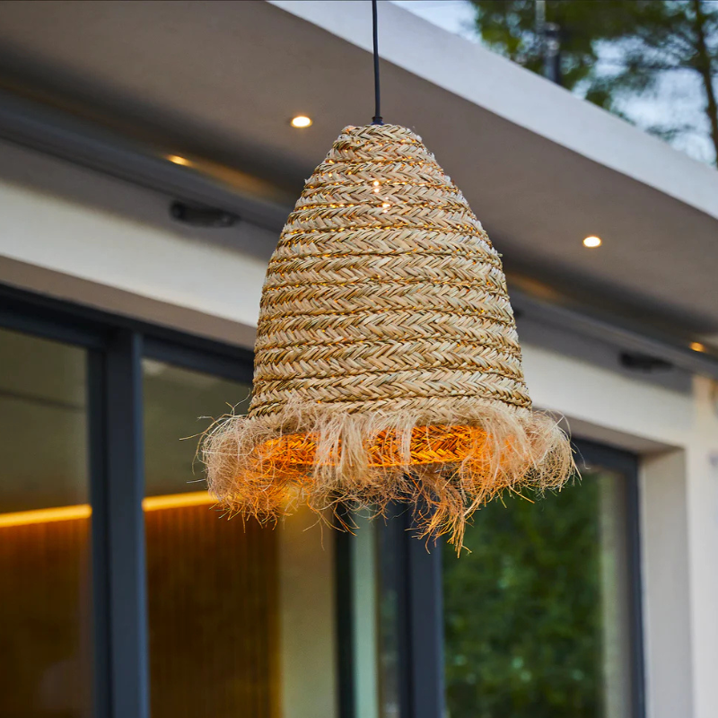 The advantages of the Mykonos Outdoor Cable pendant in natural rattan are as follows: