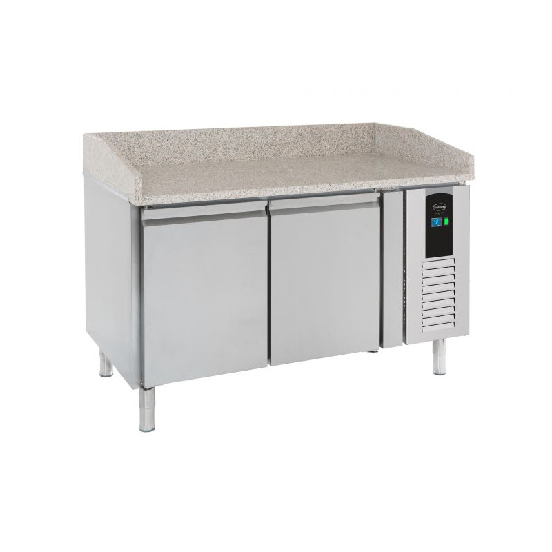 This Preparation counter of the Saladette type with marble worktop and refrigerated gastronorm zone protected by a screen. Ideal for preparing pizzas, salads, and sandwiches. Large storage capacity. The marble worktop stays cold, preventing the pizza dough from sticking. Fully automatic control with constant digital display and automatic defrosting. CFC-free. Not tropicalized.