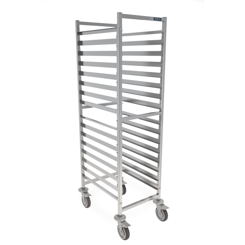 Vaunun kaksitasoinen kokoonpano mahdollistaa pystysuoran tilan maksimaalisen käytön, ja siinä on kaksitoista tasoa, jotka ovat yhteensopivia GN 1/1 -tarjottimien kanssa. 80 mm väli jokaisen tason välillä takaa helpon pääsyn ja optimaalisen ilmankierron, mikä on välttämätöntä elintarvikkeiden laadun säilyttämiseksi kuljetuksen aikana. Tarjottimien lukitusten lisääminen kummallekin puolelle lisää turvallisuutta, vähentäen riskiä, että tarjottimet liukuvat tai putoavat siirron aikana.