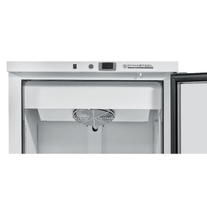 Negatiivinen jäähdytetty kaappi, jossa on puhallettu kylmä, 600 litraa, valkoiseksi lakattu viimeistely ja lasiovi.