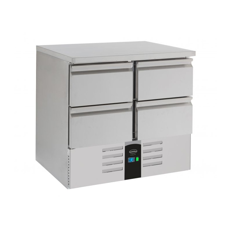 Ideaalinen ravintola-alan ammattilaisille, tämä Yhden oven ja kahden laatikon jäähdytetty pöytä mahdollistaa varaston järjestämisen ja helpottaa pääsyä käytetyimpiin ainesosiin, erityisesti kahden laatikon ja yhden oven ansiosta. Nettokäyttötilavuus on 171 L. Pöydässä on uskomattoman kestävä rosterinen työtaso ja se tarjoaa korkealaatuisen ruoanvalmistusalueen tai vankan tuen pienille laitteille ja varastoinnille.