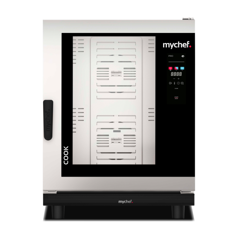 Denna Kompakt Kombiugn med Pekskärm 6 x GN 1/1 med Stöd, Installationskit och Utsugshuv kombinerar elegant kraft och teknologi för att förvandla varje kulinarisk uppgift till en enkel och effektiv upplevelse. Utrustad med en intuitiv pekskärm erbjuder denna ugn kockar möjligheten att övervaka och kontrollera tillagningen exakt, vilket garanterar kulinarisk perfektion vid varje användning.