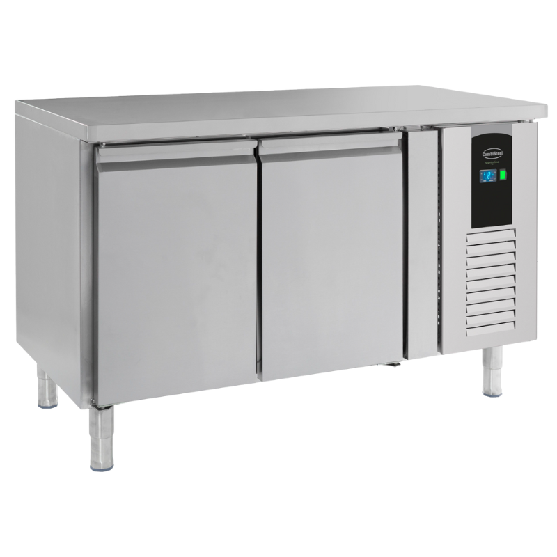 Kylbordet är utrustat med två fulla svängdörrar, vilket möjliggör en effektiv bevaring av fräschör och en betydande minskning av temperaturvariationer vid frekvent öppning av dörrarna. Med en volym på 159 liter erbjuder det generöst lagringsutrymme, anpassat för plåtar och galler av storlek GN 1/1 (530 x 333 mm), perfekt för optimal organisation av begränsade arbetsutrymmen.