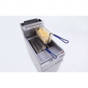 Denna Professionella Fritös har en tank på 21 L. Den är utrustad med 2 korgar L 165 x D 335 x H 150 mm. Du kan kontrollera temperaturen från 93 °C till 205 °C. Denna fritös är utrustad med en automatisk säkerhet.